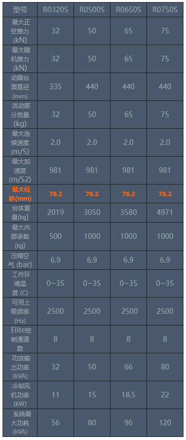 76 mm位移,32-75kN推力將標(biāo)準(zhǔn)設(shè)備的51mm位移提高到76mm,可滿足運(yùn)輸環(huán)境振動試驗(yàn)條件。如GJB150(A)中輪式戰(zhàn)車運(yùn)輸試驗(yàn)。推薦研制車載或載艦載裝備的軍工單位選擇該系列產(chǎn)品裝備試驗(yàn)室。該大位移系列設(shè)備可同時滿足標(biāo)準(zhǔn)試驗(yàn)系統(tǒng)可以完成的各個行業(yè)標(biāo)準(zhǔn)試驗(yàn)規(guī)范。