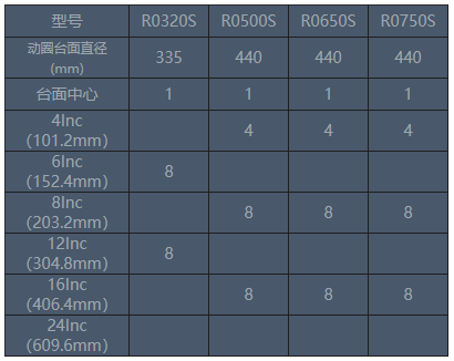 圓形擴(kuò)展臺具有良好的頻響特性,其臺面螺釘分布符合上表標(biāo)注尺寸。
